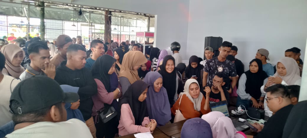 Ternate, JhaziraMU – Ratusan calon penumpang kapal rute Kabupaten Kepulauan Sula dan Taliabu memadati Kedai Bu’yun, depan Taman Nukila, Kota Ternate, Selasa (25/3/2025). Mereka datang untuk mengambil tiket kapal bersubsidi, namun proses distribusi mendadak tertunda, memicu kekecewaan dan protes dari calon penumpang.