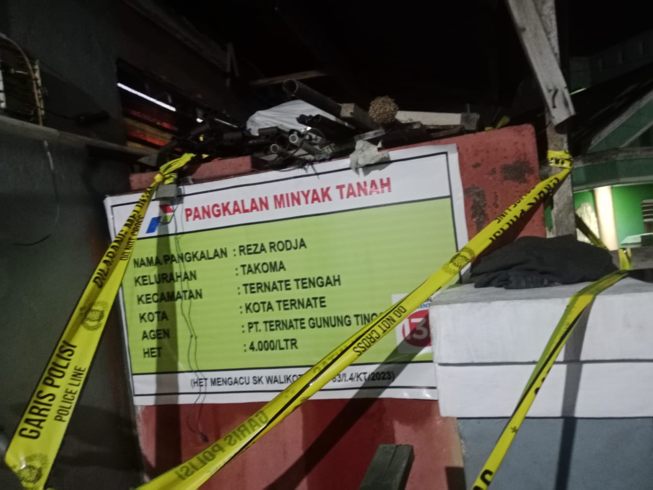 TERNATE, Jhazira — Polres Ternate menyegel pangkalan minyak tanah (mitan) subsidi milik Reza Rodja di Kelurahan Takoma, Kecamatan Ternate Tengah, setelah ditemukan indikasi kuat adanya penyelewengan distribusi, Minggu (27/4/2025).