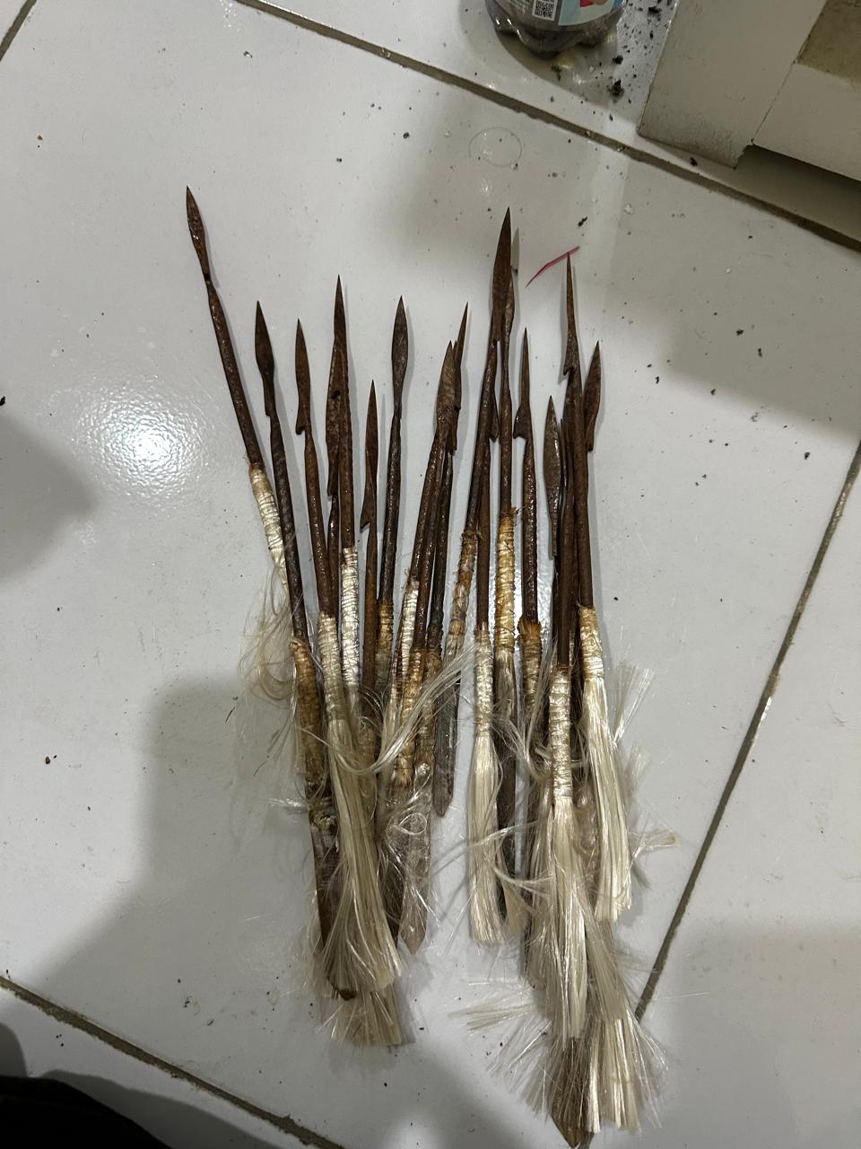 Barang bukti yang diamankan termasuk 10 parang, 1 tombak, 5 ketapel, 1 pelontar panah, dan 19 busur anak panah. Polisi juga menyita spanduk dan perlengkapan tenda yang digunakan massa untuk bertahan di lokasi.