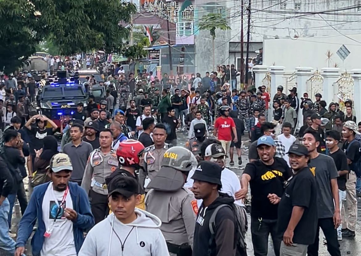Kericuhan terjadi hingga empat kali sepanjang aksi, puncaknya menjelang magrib ketika lemparan batu ke arah aparat semakin intens. “Awalnya kita bertahan, tapi karena massa terus melempari, terpaksa kita bubarkan. Belasan orang itu sementara diamankan untuk proses interogasi,” tegasnya.