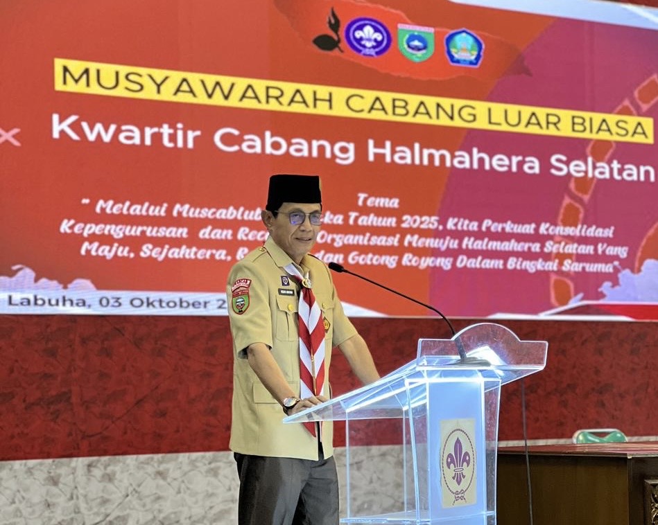 LABUHA, Jhazirah.com – Wakil Bupati Halmahera Selatan (Halsel), Helmi Umar Muchsin, secara resmi membuka Musyawarah Luar Biasa (Muslub) Kwartir Cabang Gerakan Pramuka Halsel di Aula Kantor Bupati, Jumat (3/10/2025).