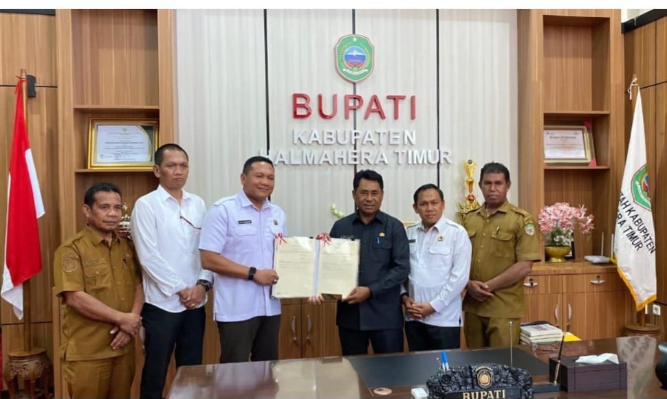 Penyerahan dilakukan langsung oleh Kepala Kantor Wilayah BPN Maluku Utara, Lalu Harisandi, kepada Bupati Halmahera Timur, Ubaid Yakub, di ruang kerja bupati, Selasa (7/10/2025). Turut hadir Kepala BPN Haltim, Ikin Sodikin, serta sejumlah pejabat daerah.