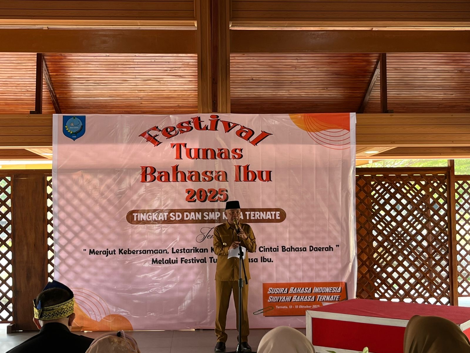 TERNATE, Jhazirah.com — Pemerintah Kota Ternate melalui Dinas Kebudayaan resmi membuka Festival Tunas Bahasa Ibu (FTBI) tingkat SD dan SMP se-Kota Ternate Tahun 2025, Senin (13/10/2025).