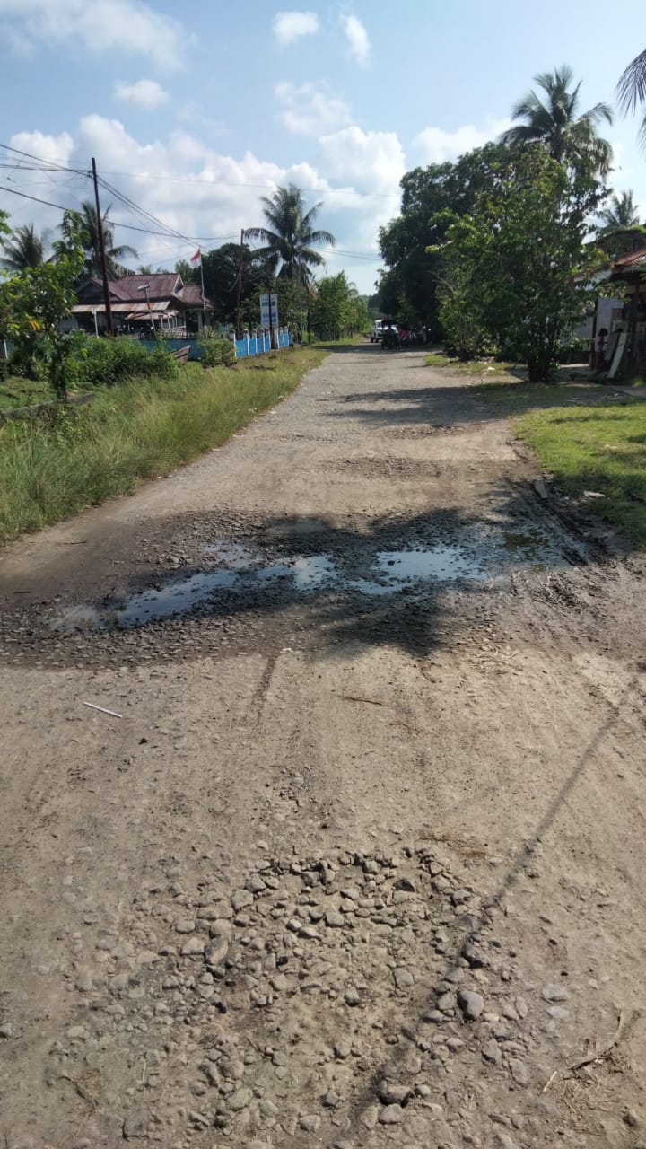 Jalan yang menghubungkan desa dengan puskesmas, kini lebih mirip kubangan lumpur saat hujan dan ladang debu saat kemarau.