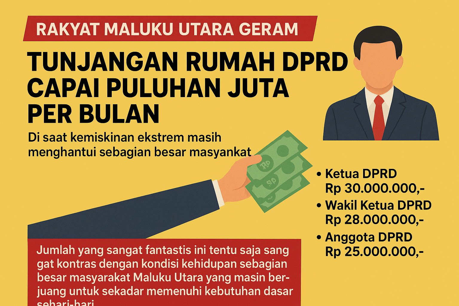 Bagi sebagian warga, angka ini sangat mencolok dan dianggap tidak memiliki kepekaan terhadap situasi sosial. “Kami heran, rakyat masih miskin tapi mereka bisa terima puluhan juta hanya untuk rumah. Ini kebijakan yang menyakitkan,” ujar Ketua Harian DPD Persatuan Alumi (PA) GMNI Malut, Mudasir Ishak.