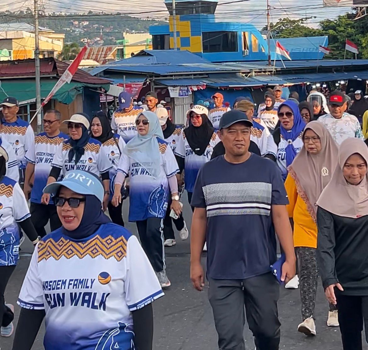 TERNATE, Jhazirah.com – Ribuan warga Kota Ternate antusias mengikuti kegiatan fun walk yang digelar DPW Partai NasDem Maluku Utara berkolaborasi dengan DPD Partai NasDem Kota Ternate, Minggu (9/11/2025).