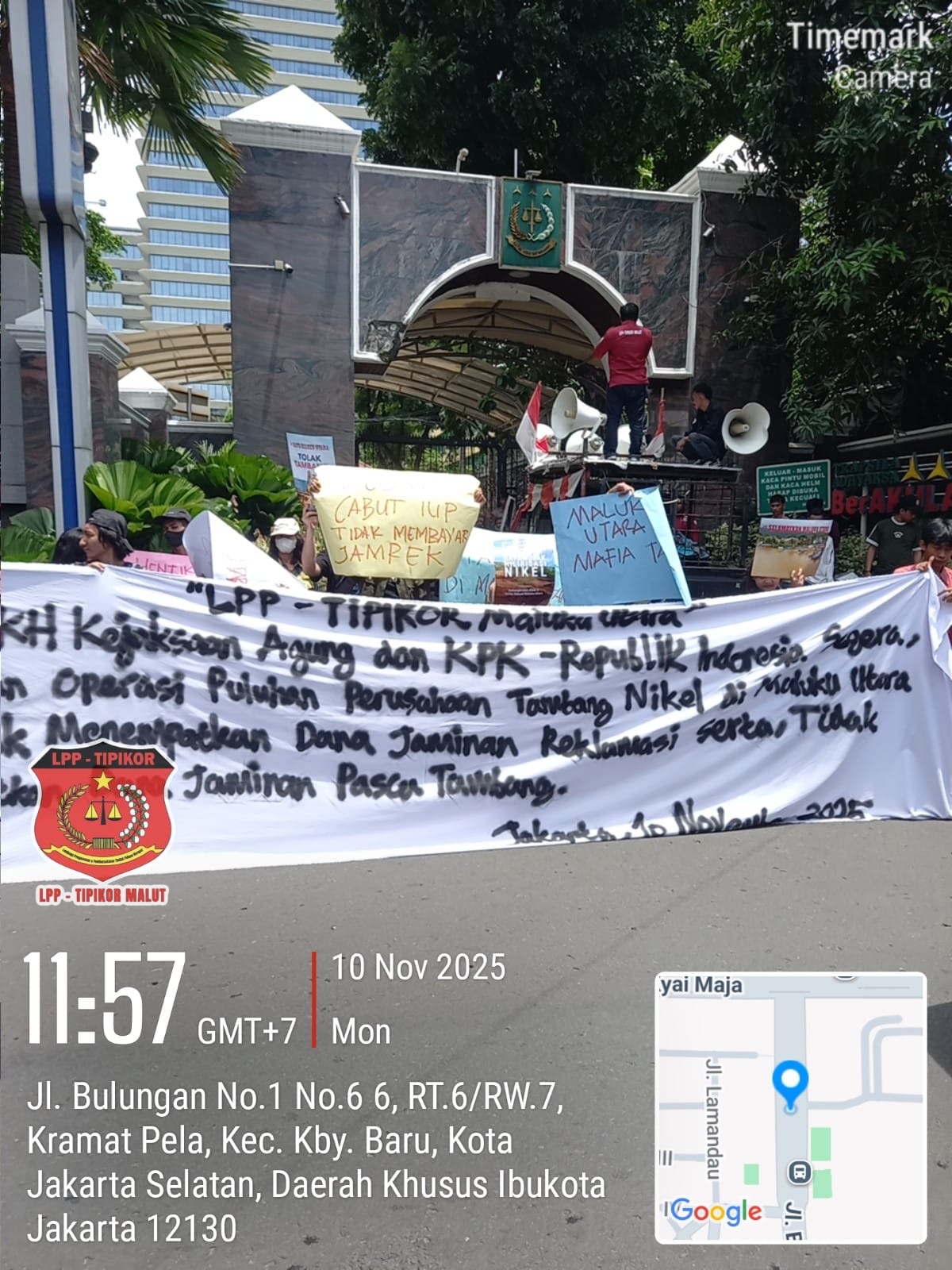 JAKARTA, Jhazirah– PT Karya Wijaya terancam sanksi berat usai Lembaga Pengawasan dan Pemberantasan Tindak Pidana Korupsi (LPP Tipikor) Maluku Utara menggelar aksi di depan Kantor Kejaksaan Agung RI, Senin (10/11/2025). Aksi ini menyoroti dugaan kelalaian puluhan perusahaan tambang di Maluku Utara, termasuk PT Karya Wijaya, dalam menempatkan Dana Jaminan Reklamasi dan Pascatambang sebagaimana diatur dalam UU Nomor 3 Tahun 2020 tentang Pertambangan Minerba dan PP Nomor 78 Tahun 2010.