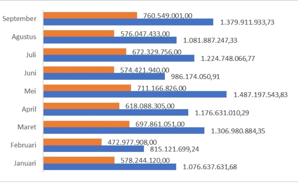Data bulanan mengonfirmasi stabilnya aktivitas ekspor. Nilai ekspor hanya turun signifikan pada Februari, tetapi kembali menguat pada bulan-bulan selanjutnya. Pada September, ekspor mencapai Rp1,37 triliun, menandai keberlanjutan tren positif industri nikel di pasar global.