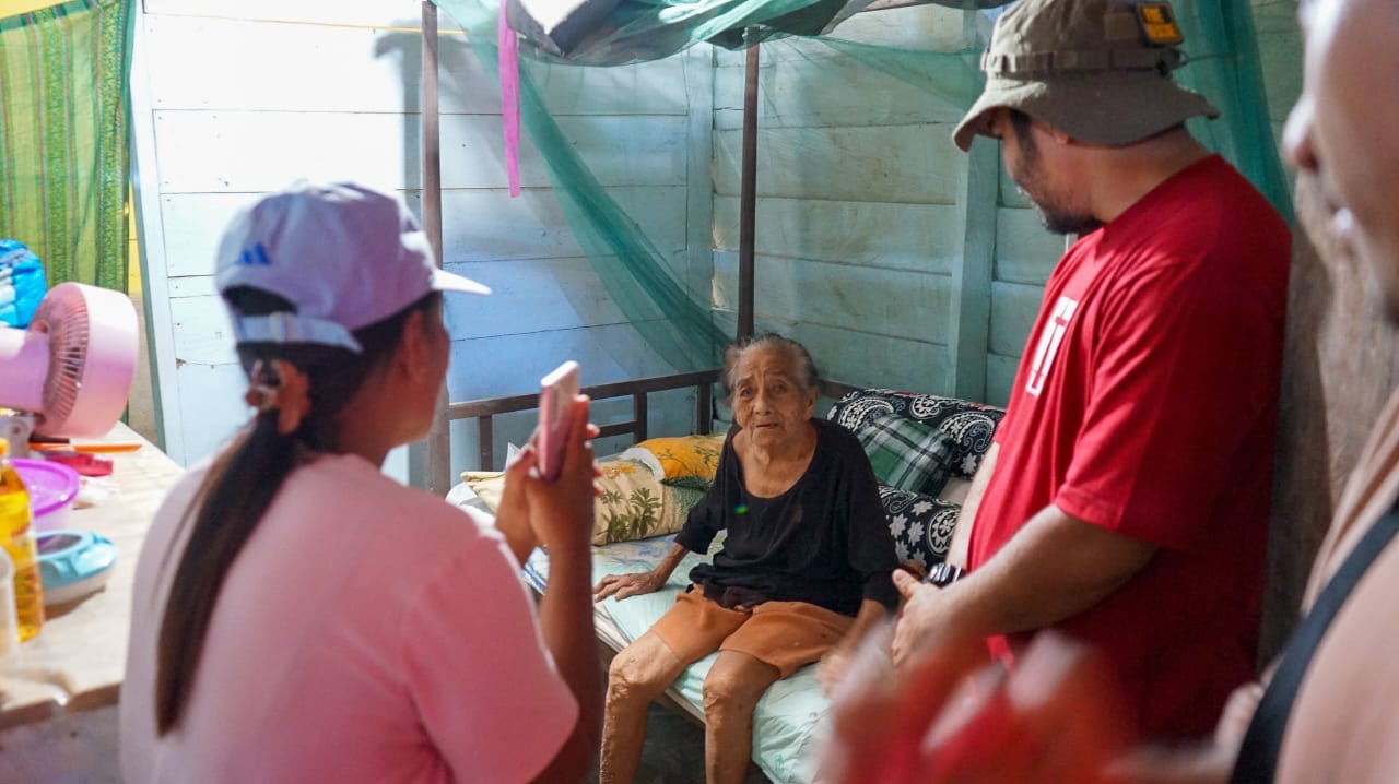 Kisah haru datang dari Obelia Bawes, anak yatim piatu asal Desa Dim-dim. Dengan mata berkaca-kaca, ia mengaku bantuan tersebut sangat berarti bagi kehidupan sehari-harinya.