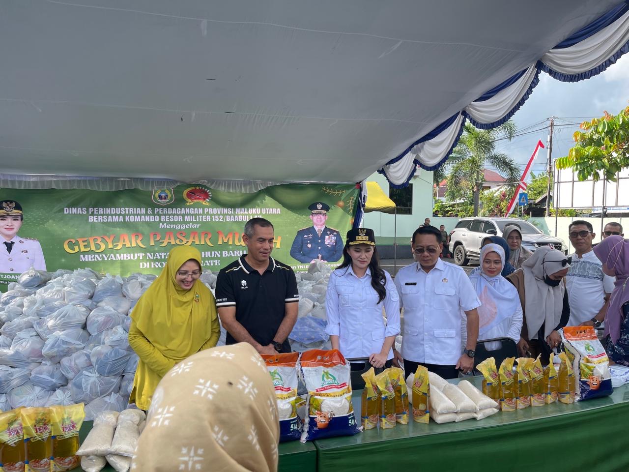 Ia menjelaskan, pembagian sembako dan pasar murah ini merupakan hasil kerja sama lintas sektor antara Disperindag Malut, Korem 152, dan Polda Maluku Utara, dengan total 2.000 paket sembako yang disiapkan.