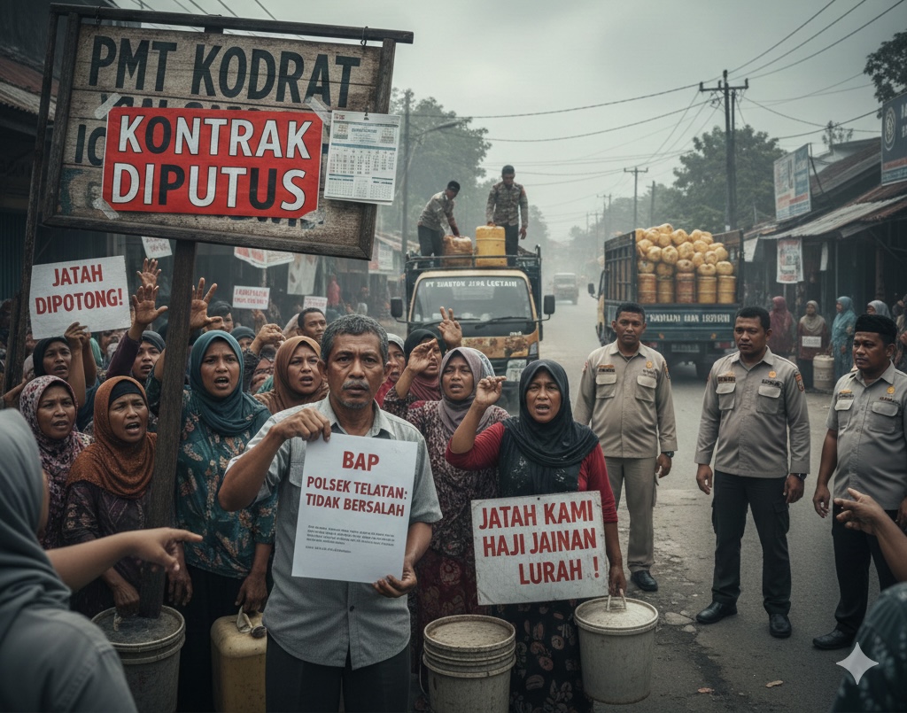 TERNATE, Jhazirah- Pemutusan kontrak sepihak terhadap Pangkalan Minyak Tanah (PMT) milik Kodrat Haji Ishak oleh PT Siantan Jaya Lestari memicu tanda tanya besar. Pasalnya, hasil pemeriksaan kepolisian secara tegas menyatakan PMT Kodrat tidak terbukti melakukan pelanggaran, namun sanksi berat tetap dijatuhkan. Ironisnya, pangkalan lain yang terindikasi melanggar justru tetap beroperasi tanpa sanksi.