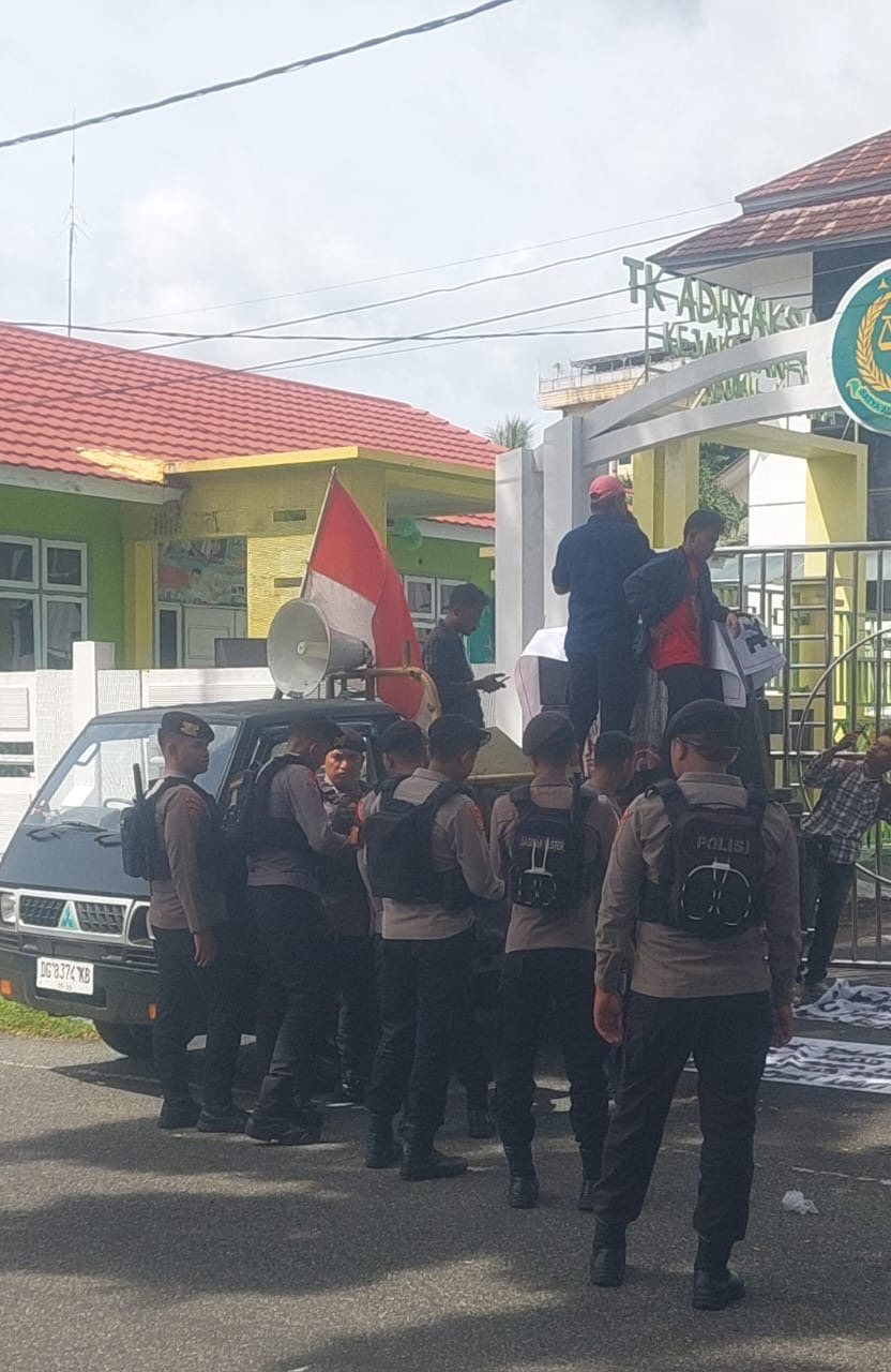 “Ini bukan sekadar salah administrasi. Ini indikasi kuat penyalahgunaan keuangan daerah. Putusan Mahkamah Agung sudah jelas, tapi uang tetap dicairkan,” tegas Juslan dalam orasinya.