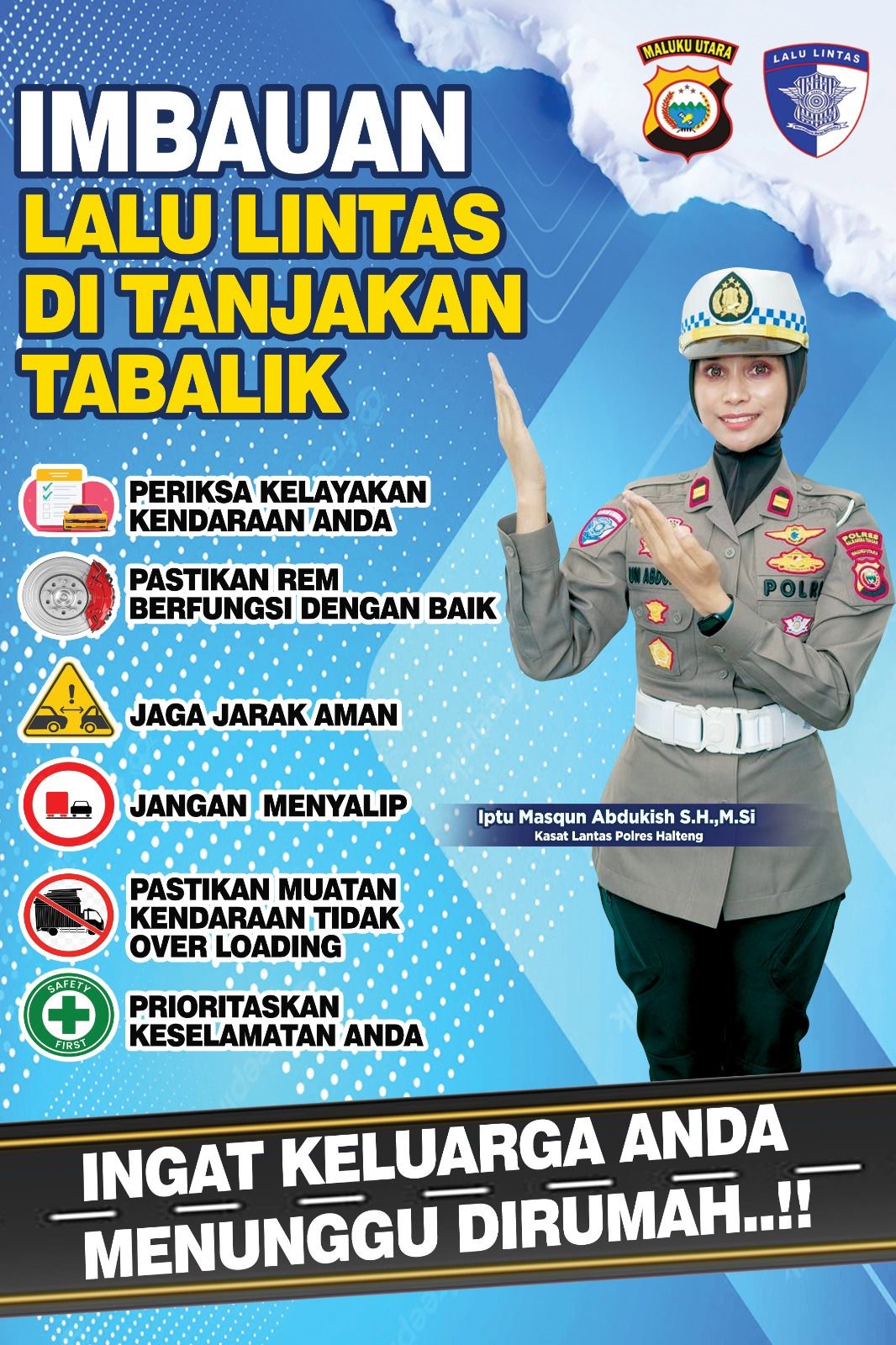 Pada Kamis (22/1/2026) sekitar pukul 16.00 WIT, Satlantas Polres Halteng memasang sejumlah imbauan keselamatan berlalu lintas di sepanjang tanjakan Tabalik. Pemasangan ini ditujukan bagi seluruh pengguna jalan agar lebih waspada saat melintas di kawasan tersebut.