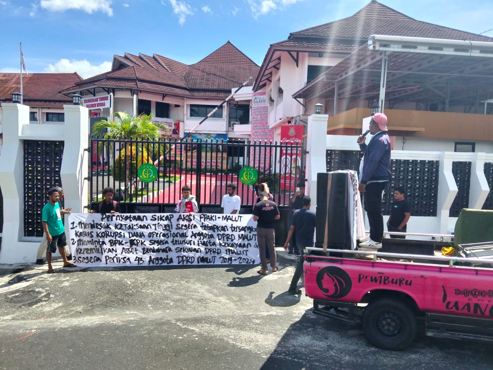 Koordinator aksi, Juslan, menegaskan bahwa persoalan tunjangan DPRD Malut merupakan dugaan penyalahgunaan kewenangan yang sistematis.